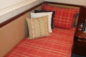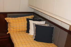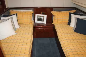 Twin MTU 12V 2000’s @1370 hp each power this sleek cruiser and comfortable accommodations are provided in 3 en suite staterooms.