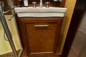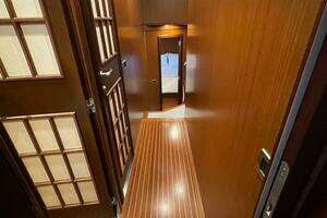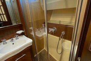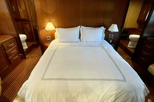 Below deck you will find 4 cabins with 4 heads and a spacious aft crew area offers accommodations for 2 and walk-in access to the machinery and engine room spaces.