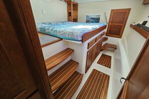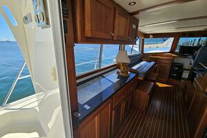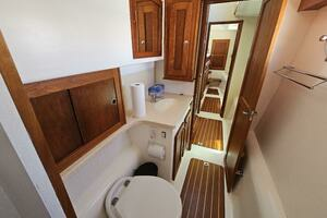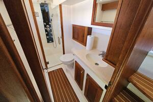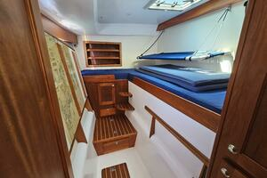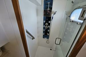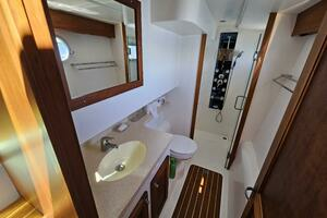 The beauty of the P-47 platform is the abundance of space, excellent 360 degree visibility and tons of headroom, making her feel like a much larger vessel. She features the standard two cabin layout, with the Master Stateroom featuring an enormous king size bed. Both cabins have spacious en-suite heads, with electric toilets and separate shower stalls. The saloon settee can easily be converted to a king-size berth, for the occasional additional guests as well as the port side bench seat able to convert to a berth as well. The unique galley configuration has extensive counter space for easy entertaining for anytime and anywhere.
