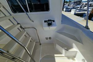 Audrey Louisa is a fantastic example of a 47ft Power Catamaran ready for the extended time on the water. This vessel was custom built for a very experienced MIT engineer who duplexed all the electronics including radars- Simrad and Garmin. There is a third set of engine controls starboard aft for convenient single handed docking or mooring pickup. The selling owner has often single handed her.