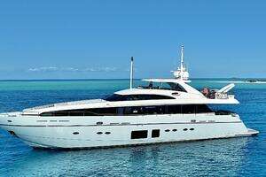 Loaded with options and upgrades. Beachfront Il is equipped with bow and stern thrusters, two "zero speed and underway" stabilizers (2 x ABT Trac fins), a large hydraulic swim platform allowing easy tender or jet ski launching, and a foldable hydraulic balcony on her starboard side offering additional deck space.