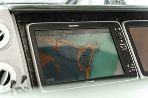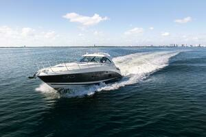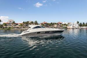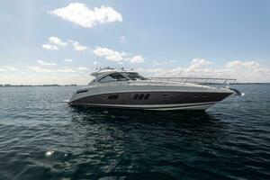 This 540 Sundancer is equipped with the upgraded 715HP QSM11's with SkyHook position-keeper. She is a highly optioned model featuring a hydraulic swim platform, joystick controls, AC in her exterior cockpit, and a full array of upgraded navigation equipment.