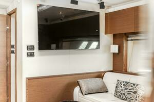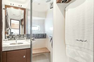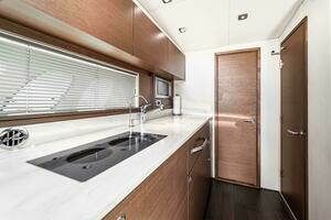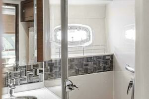 Her stunning and modern interior boasts a massive salon and open galley, full-beam master and forward VIP cabin- each with a private head and separate shower. Her VIP cabin head also doubles as a useful day head, for convenient access for all your family and guests.