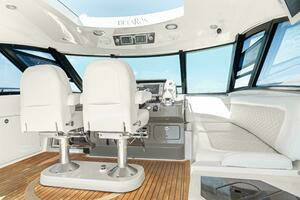 Her comfortable and family-style salon features a sleeper sofa to host your extra guests comfortably. The exterior is equipped with an upgraded JL Audio Sound System, full wet bar with icemaker and refrigerator & a Sunbrite, all- weather, flat-screen-HD TV.