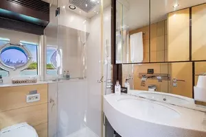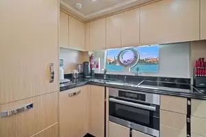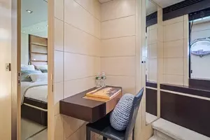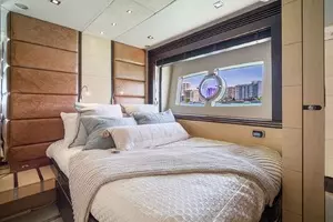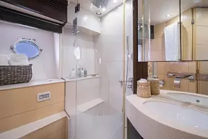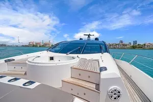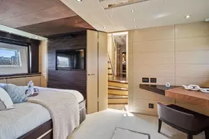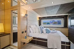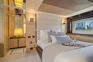With a top speed of 32 knots and zero speed fin stabilizers, this impeccably-styled sport yacht will get you from point A to point B both quickly and comfortably. Exceptional exterior areas create the perfect atmosphere for entertaining friends and family at sea. A large cockpit with sun lounge, and a jacuzzi with sunpads forward allow you to relax in luxury.