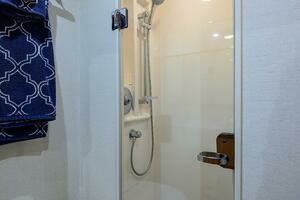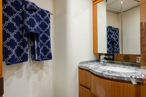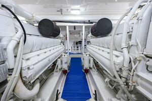 The 4 stateroom, 4 head interior is spacious. The large salon windows provide good sight lines and lots of natural light. Powered by MTU 16V-2000s with low hours, she has had her 2,000-hour service. She is in immaculate condition.