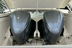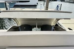 Pursuit quality is on full display with the SC 365i Sport Coupe, a premium day cruiser whose concealed outboards and stylish hull-side windows are a first for any Pursuit boat. The single-piece laminated windshield is fully integrated with the fiberglass hardtop that comes complete with a large sunroof that opens at the push of a button. The wide helm chair is complimented by a raised doublewide lounger to port for passengers. The aft cockpit is highlighted by an extra-large lounge with backrest to port, foldaway transom bench seat, and molded entertainment center with sink, electric grill, and storage. Below decks, the Pursuit’s lush cabin features a forward convertible dinette that becomes an island berth when the twin seats are pulled together. A solid wood dining table with electric actuated table base is standard and the full-service galley has a Corian counter, convection oven, and plenty of storage. Add the single or twin bed arrangement in the mid-cabin and four adults can overnight in comfort. Additional features include a cockpit refrigerator, bow thruster, thru-stem anchor system, and molded engine cover with portside entry door. Twin F350 Yamahas cruise at 30 knots (40+ top).