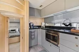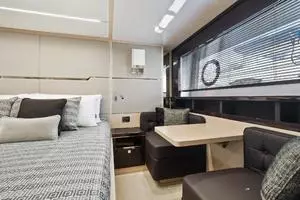 Exquisite interior and captivating design are prominent throughout the entire yacht – a classic example of Sunseeker design ingenuity. The extravagant sliding roof adds a sense of occasion to every journey – especially those undertaken at top speeds. Built to both thrill and inspire, you can’t help but fall for this symbol of success.