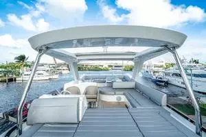 Welcome aboard the Winner of the 2018 Motor-Yacht Boat of The Year. This is a 2019 Sunseeker Manhattan 66 powered with twin Volvo IPS 1350 Engines and has virtually every option. This is a 4 Stateroom boat with an aft private full beam master, plus Crew Quarters. Sunseeker has taken the space available and created a yacht that feels and looks much bigger. The Fly-Bridge is most impressive lending itself to a space that feel like a 75’ or bigger yacht.