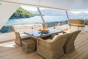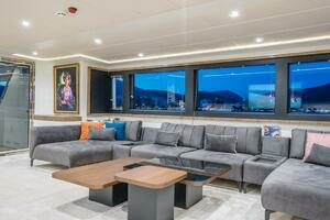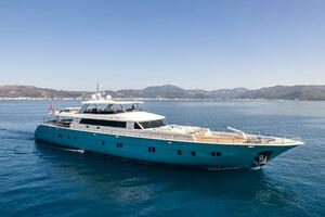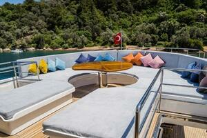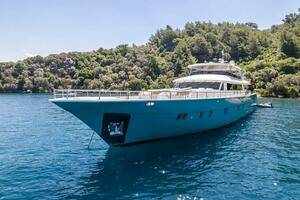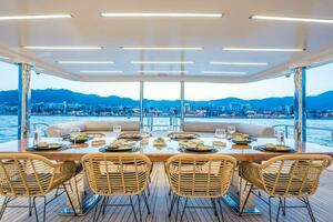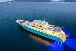 Measuring 40 meters in length, the yacht boasts expansive living spaces, including a flybridge, jacuzzi, sunbathing areas, and comfortable lounges. The rear platform is thoughtfully designed for guests to unwind, swim, and bask in the sun.