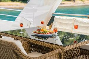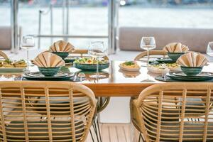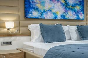 The cabins include two Master suites, three doubles, and one single, ensuring privacy and comfort for all. With a crew capacity of up to 7 people, guests can enjoy a seamless and relaxing charter experience.