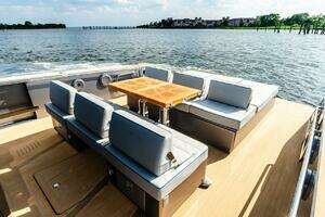 The walkaround design is one of the main advantages of the deck: it guarantees extra space and facilitates safe access to the bow sundeck. As in very large yachts, an optional longer stern platform can be used to step on or off board, take a swim, a shower outside or as an extra entertainment area equipped with mattresses, poufs or chaise lounges.