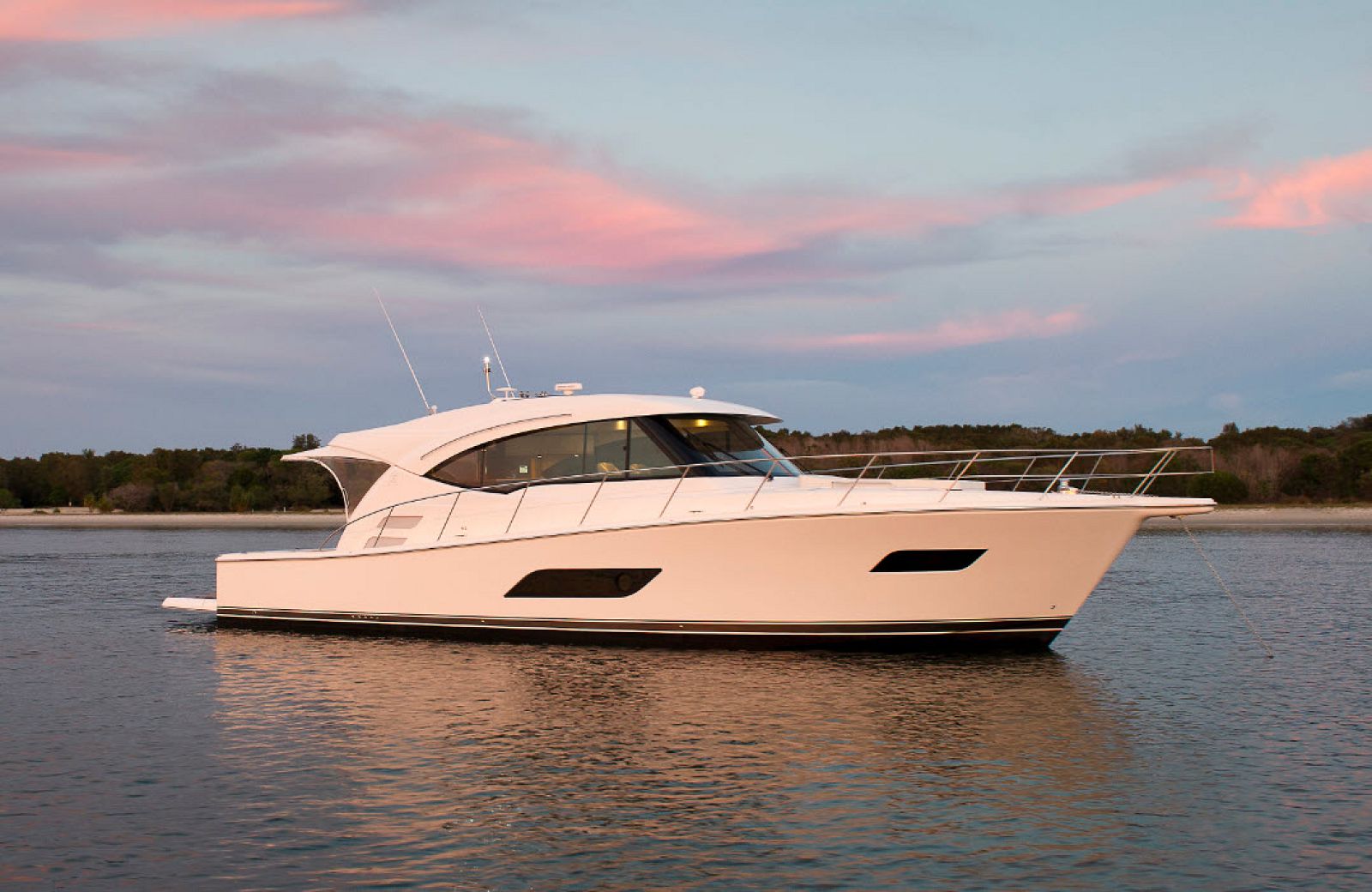The Riviera 515 SUV is a 56-foot dual-purpose sport cruiser that was produced by the iconic Australian yacht-building company Riviera Yachts between 2014 and 2017. Classic curves with structural flares, a sleek profile and a hefty cockpit highlight this yacht’s two identities: its use as a quick, stylish and luxurious offshore cruiser and its ability to function as a competitive sport-fisher that can land record catches of marlin or bluefin tuna.